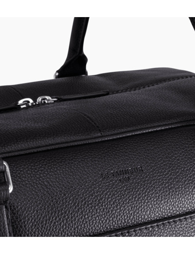 2 poches plates, 1 poche zippée et 1 poche moussée ordinateur. 1 poche plate avant. 1 poche zippée arrière. Passant trolley. Bandoulière amovible et ajustable.