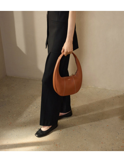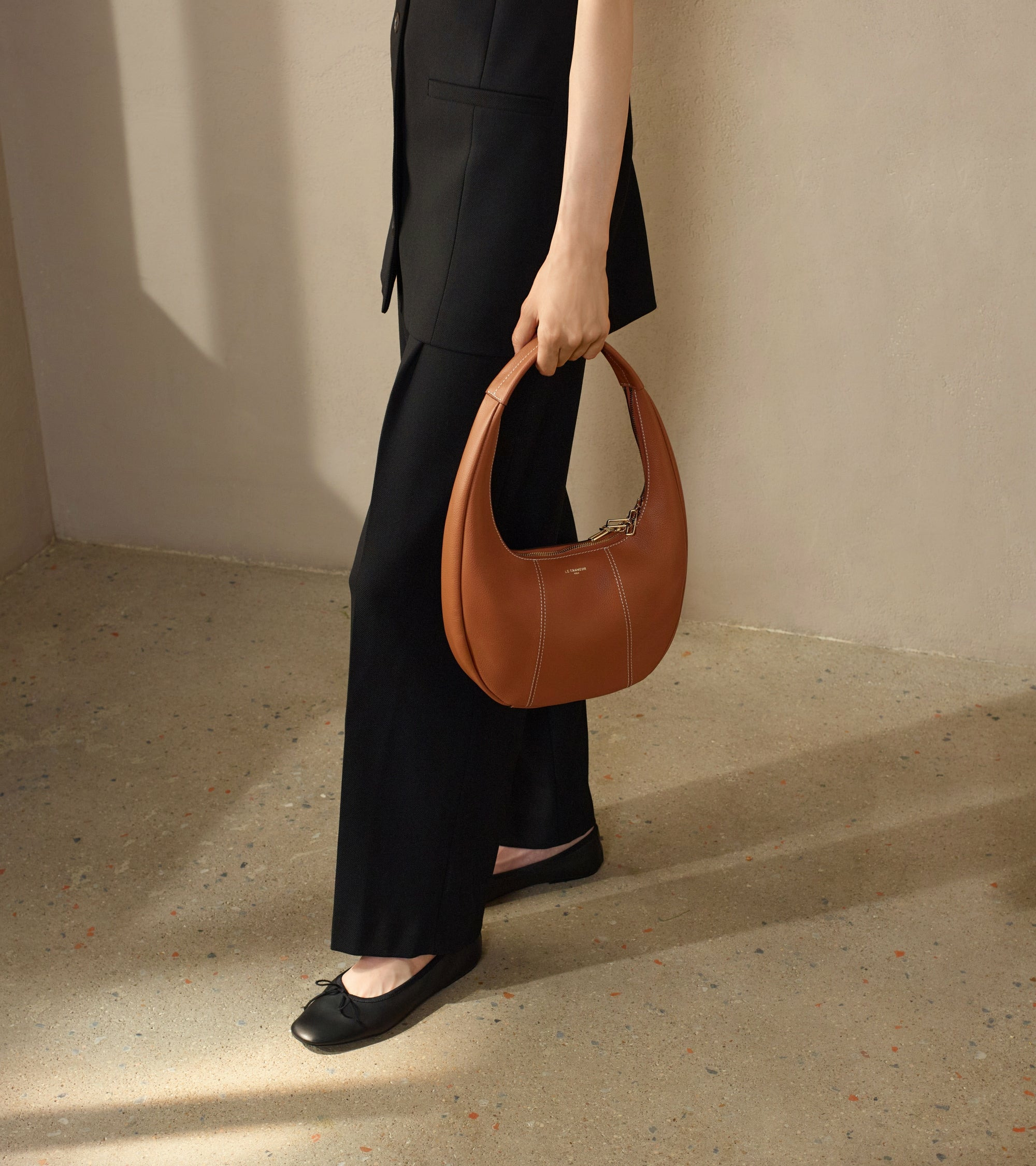 Sac hobo moyen format avec zip signature double fermeture et marquage Le Tanneur. Porté main.