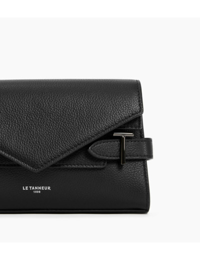 Pochette double rabat marquée Le Tanneur, avec bandoulière chaine et bijouterie T signature. Porté épaule ou croisé.