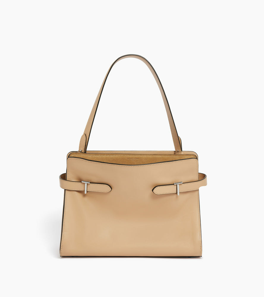 Sac porté épaule bimatière grand modèle avec fermoirs T signature et doublure jacquard anniversaire. Marquage Le Tanneur et éléments métalliques finition argent. Porté main, épaule ou croisé grâce à sa bandoulière ajustable et amovible. Seconde anse porté épaule amovible.