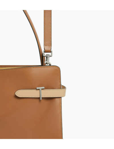 Sac porté épaule bi-matière grand modèle avec fermoirs T signature et doublure coton bleu marine. Marquage Le Tanneur et éléments métalliques finition argent. Porté main, épaule ou croisé grâce à sa bandoulière ajustable et amovible. Seconde anse porté épaule amovible.