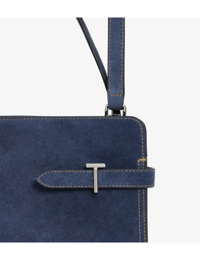Grand sac à main avec bijouterie T signature finition argent et marquage Le Tanneur ton sur ton. Porté main, épaule ou croisé grâce à sa bandoulière ajustable et amovible.