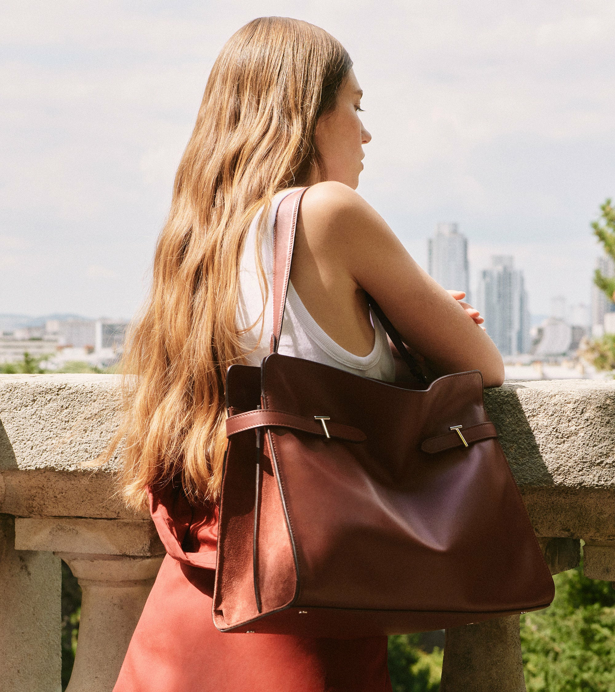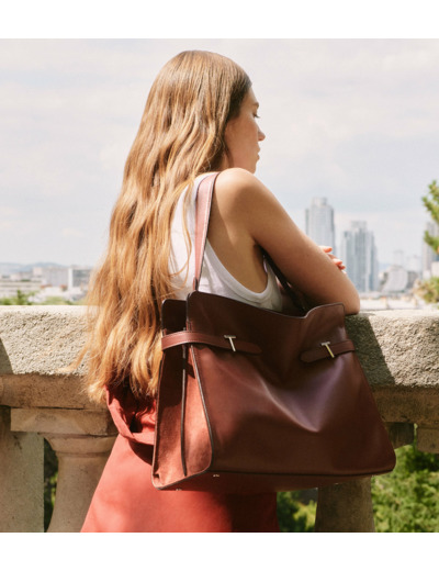 Grand cabas souple avec bijouterie T signature et marquage Le Tanneur. Porté main, épaule ou croisé grâce à sa bandoulière courte et sa bandoulière longue ajustable et amovible.