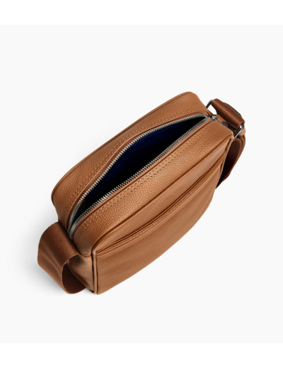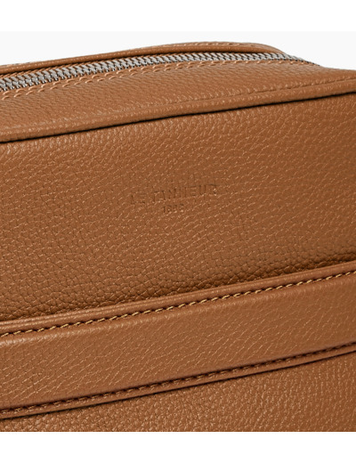 Sacoche moyen modèle avec marquage Le Tanneur ton sur ton. Tirette piquée en T, signature de la Maison. Portez-le à l’épaule ou croisé avec sa bandoulière ajustable.