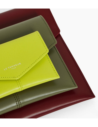Trio d'enveloppes avec poche plate au dos et marquage Le Tanneur finition argent. Dispose d'une protection RFID.