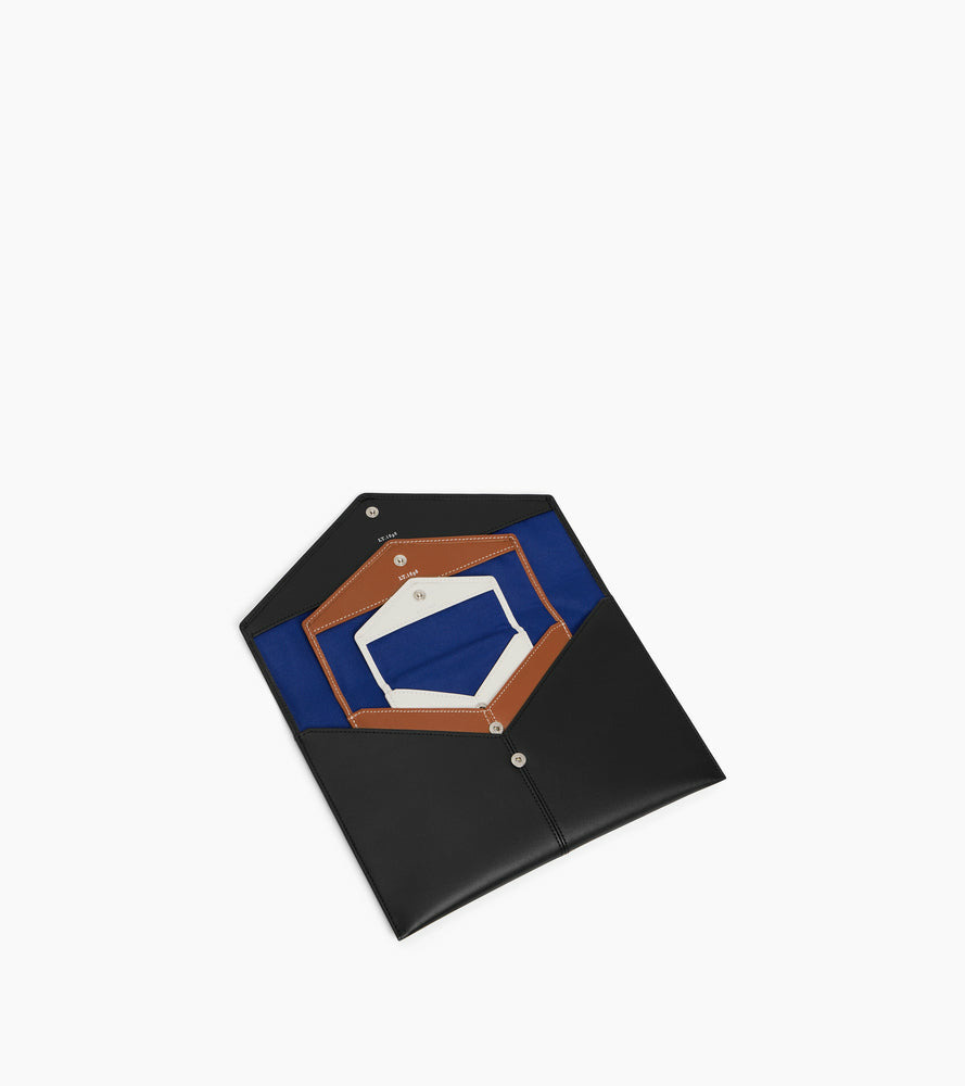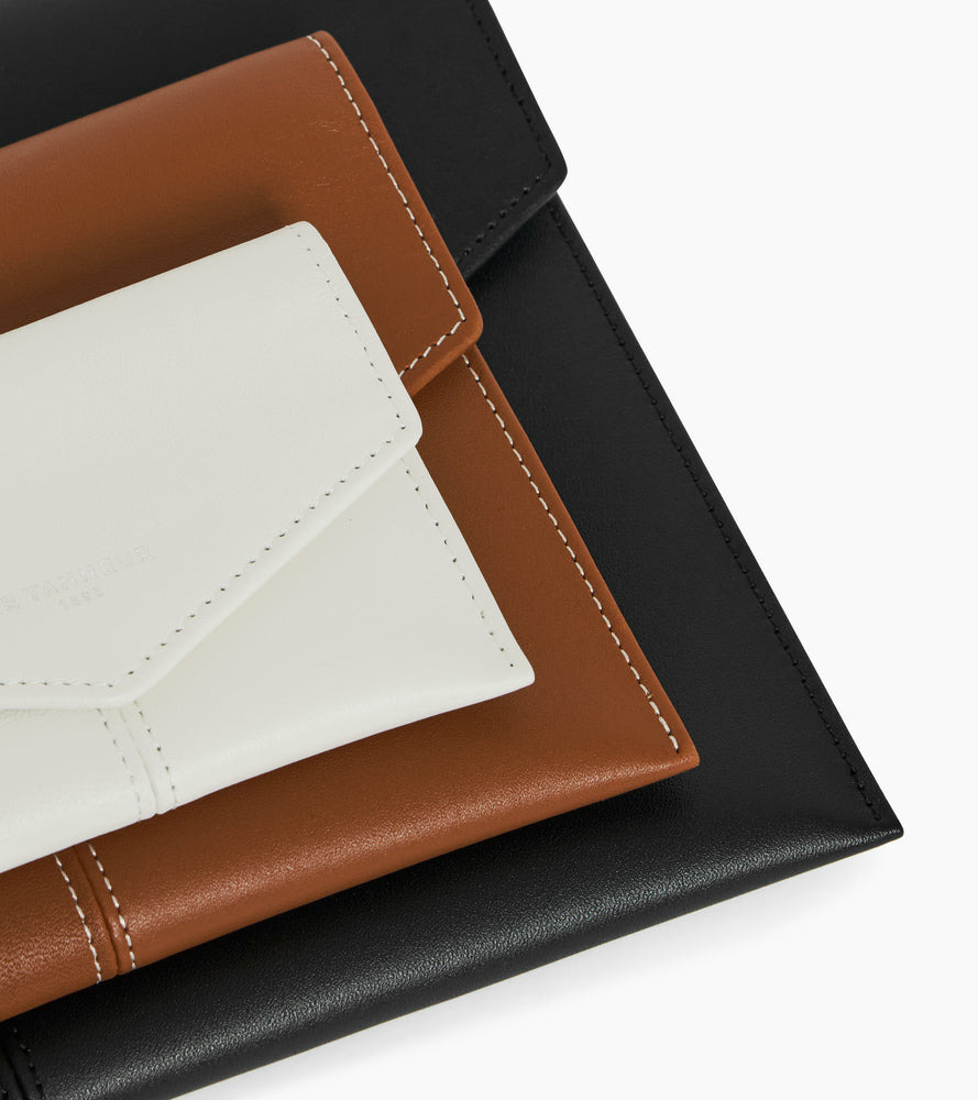 Trio d'enveloppes avec poche plate au dos et marquage Le Tanneur finition argent. Dispose d'une protection RFID.