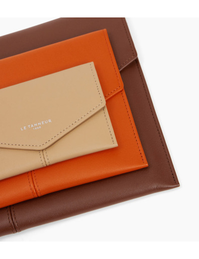 Trio d'enveloppes avec poche plate au dos et marquage Le Tanneur finition argent. Dispose d'une protection RFID.