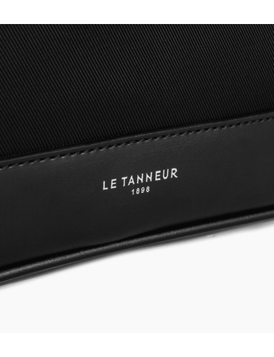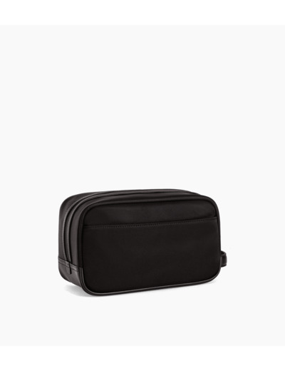 Trousse de toilette zippée en toile polyamide avec renfort cuir marqué ton sur ton.