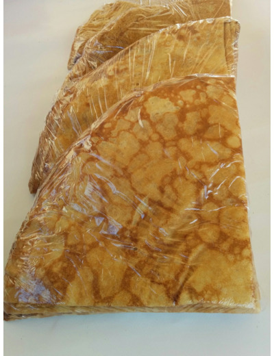 Les crêpes sont fabriquées le jour du retrait ou de l'expédition. Tous les ingrédients sont issus de l'agriculture biologique. Pour les intolérants au gluten, les galettes de blé noir (ou sarrasin) sont garanties sans gluten. Les connaisseurs les dégustent aussi bien salées que sucrées. Pour les intolérants légers, préférez les crêpes de petit épeautre (ou engrain). Le petit épeautre, ancêtre du blé, contient moins de 7% de gluten, contre 11 à 12% pour le blé, et surtout il n'est pas issu d'une céréale modifiée génétiquement, donc plus pur et plus digeste. Enfin, les intolérants au lactose pourront choisir des crêpes au "lait" d'avoine à la place du lait de vache. Sur demande, le "lait" d'avoine peut également être remplacé par du "lait" de soja, du "lait" de riz ou du "lait" de coco.N'hésitez pas à me consulter pour toute demande spécifique et pour les quantités importantes.