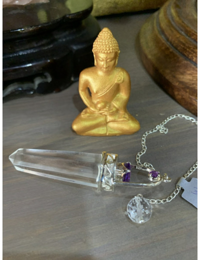 Pendule en cristal de roche et améthyste
