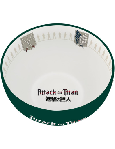 La lutte contre les Titans ne sera pas de tout repos, un bon petit-déjeuner sera nécessaire afin de tous les vaincre ! Montrez votre soutien aux membres de la Garnison, des Brigades Spéciales et du Bataillon d'Exploration avec ce bol L'Attaque des Titans