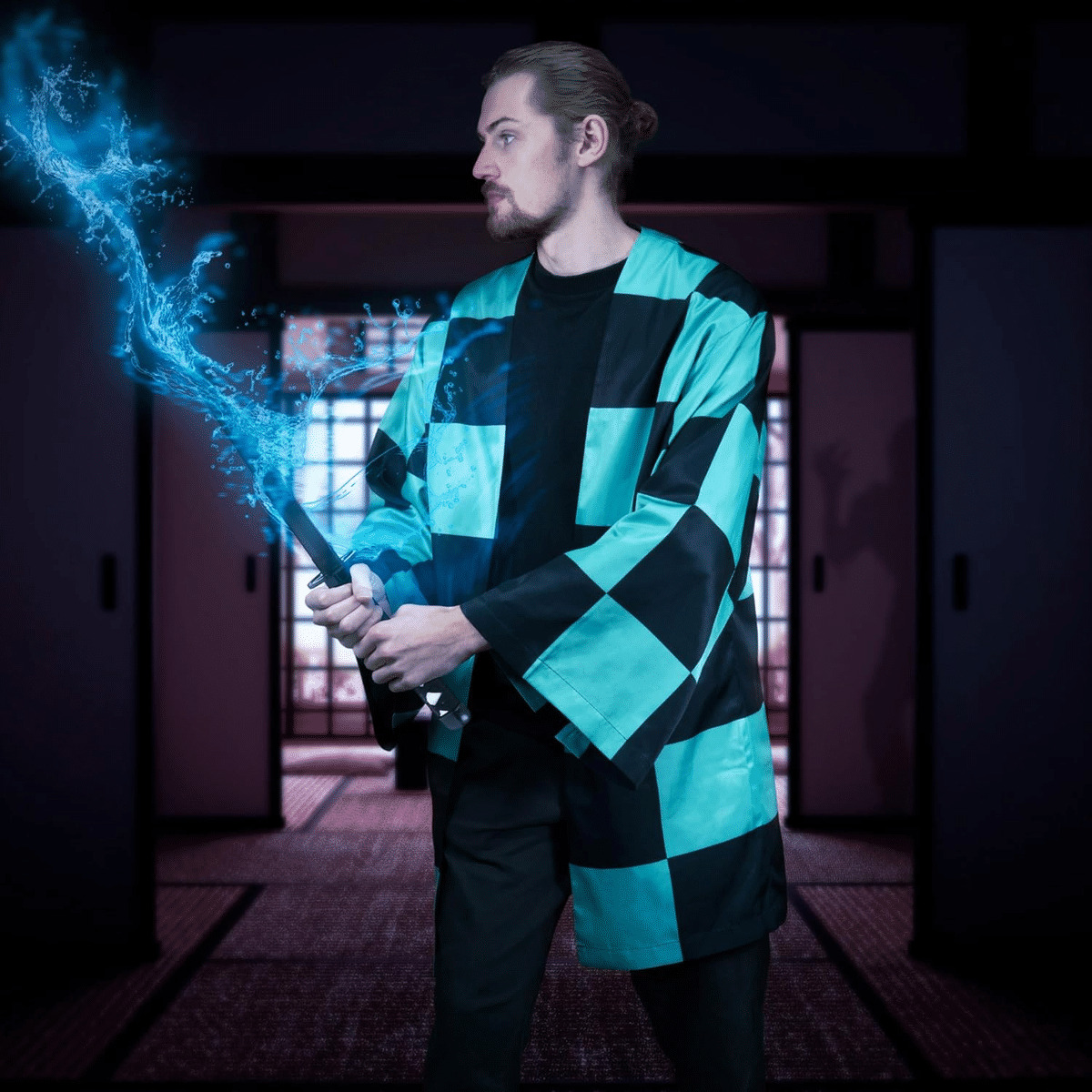 Vous venez de recevoir une nouvelle mission de votre corbeau de liaison ? N'oubliez pas de prendre votre fidèle haori avec vous ! Cette veste réplique Demon Slayer par ABYstyle présente un motif à carreaux verts et noirs inspiré du haori de Tanjiro Kamado.