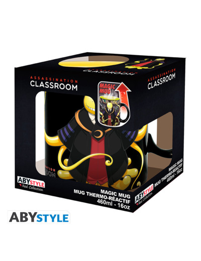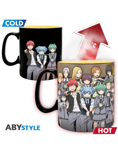 Tous les élèves de la classe s'unissent et emploient différentes armes pour essayer d'éliminer Koro sensei sur ce mug Assassination Classroom