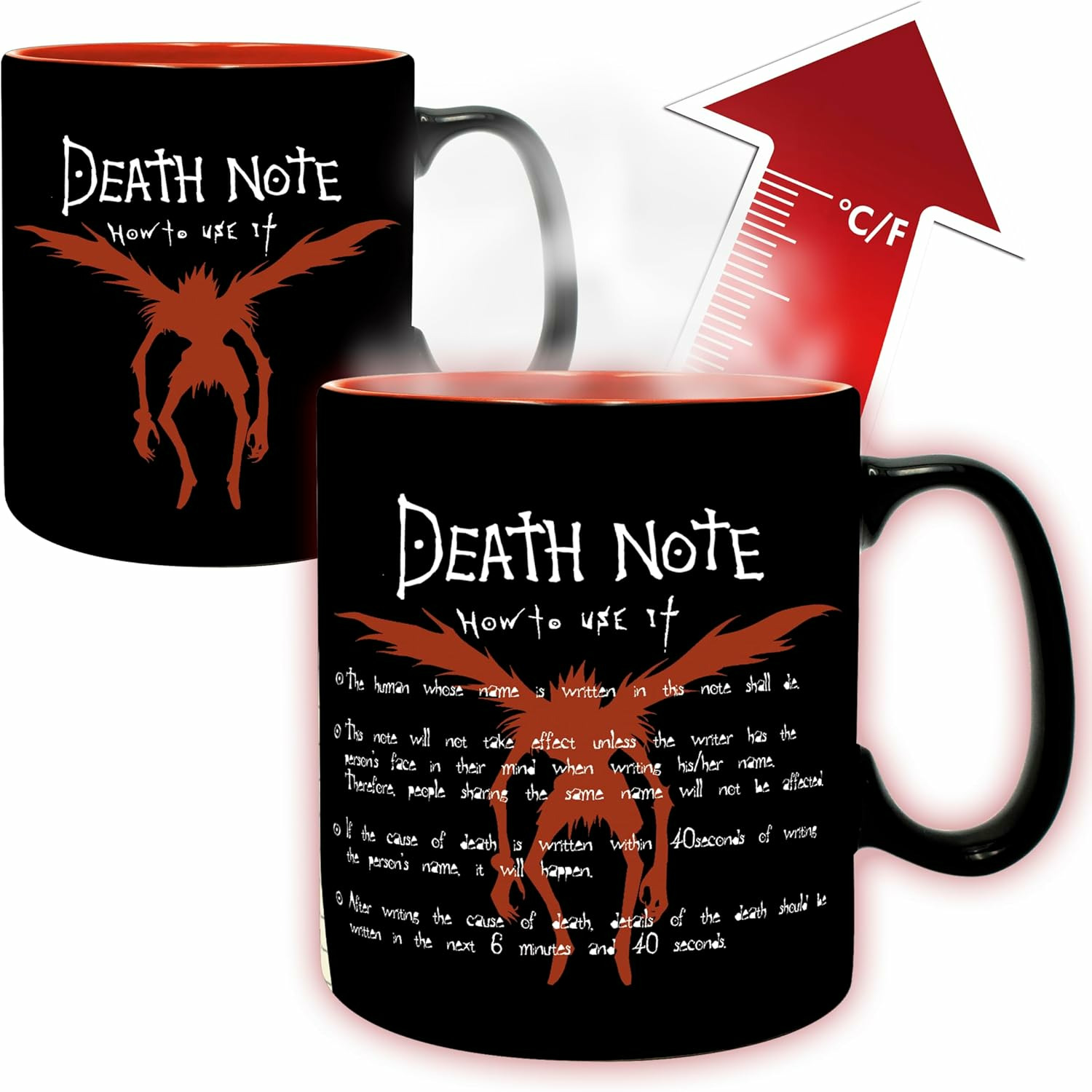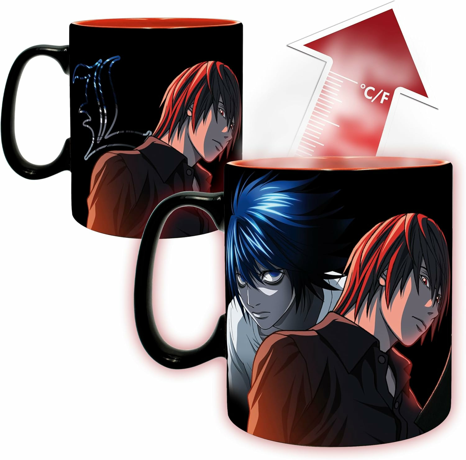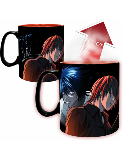 Kira est déterminé à faire régner sa justice, et Ryuk est aux premières loges pour observer l'ambition du jeune homme avec ce mug heatchange Death Note par ABYstyle ! Verser votre boisson chaude dans le mug pour voir L, l'ennemi juré de Kira, qui est lui aussi bien déterminé à faire régner la justice en attrapant Kira !