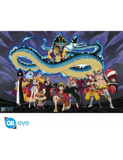 Kaido, le capitaine des Beasts Pirates, est déterminé à défendre son territoire sur l'île d'Onigashima. Luffy et tout son équipage font face à la créature la plus puissante du monde sur ce magnifique poster One Piece