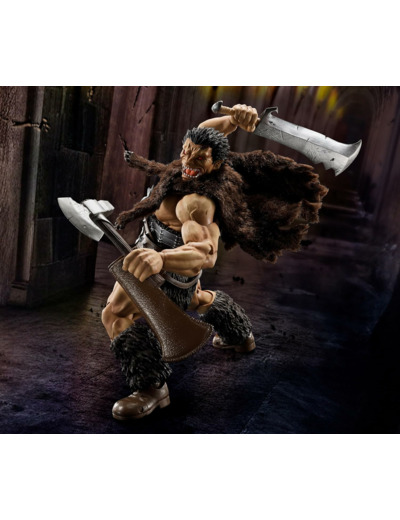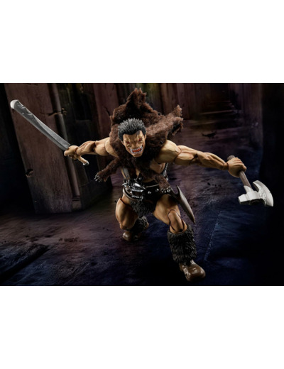 Cette figurine berserk représente l'apôtre Nosferatu Zodd sous sa forme humaine. La figurine de ce membre de la nouvelle troupe du faucon est livrée avec des mains et bras interchangeables, une cape en fausse fourrure, plusieurs visages interchangeables, une épée avec fourreau et une hache. Il s'agit d'un produit offrant des options de personnalisation variées pour obtenir des poses dynamiques.