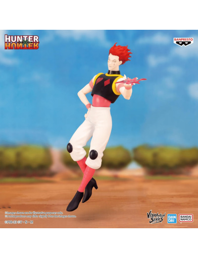 Nous voici avec une sympathique Figurine d'Hisoka, du célèbre Univers et Manga Hunter × Hunter, dans la Gamme Vibration Stars. Retrouvez Hisoka dans une posture dynamique, comme s'il effectuait un petit bond en arrière, utilisant ses capacités pour vaincre son adversaire. Hisoka affiche ici une expression faciale inquiétante, intimidante, qui colle parfaitement avec son caractère. A quel mauvais plan est-il encore en train de penser ?