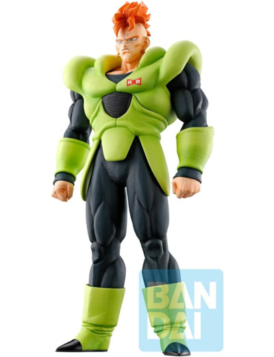 Figurine en PVC d'Android 16 dans la gamme Ichibansho Android Fear. C'est le 16e humain artificiel créé par le Dr Gero. Étant entièrement synthétique, il s'agit donc d'un androïde et non pas d'un cyborg. Physiquement, il est impressionnant, avec une taille peu commune et un look punk très affirmé, mais ses yeux bleus sont moins vides que ceux des autres cyborgs. Étant entièrement mécanique, Cell ne peut pas l'absorber. Il adopte une posture simple mais efficace faisant de lui une pièce de collection qui saura plaire aux fans de Dragon Ball Z.