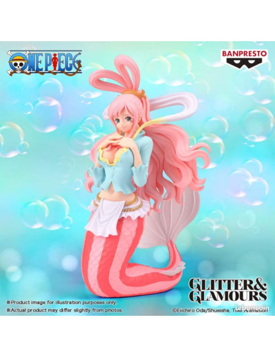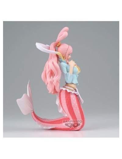 Ce qui frappe en premier, c'est la posture élégante de Shirahoshi. Ses longues nageoires roses se courbent gracieusement derrière elle, évoquant une fluidité naturelle et une aisance aquatique. Ses mains délicates posées près de son cœur ajoutent une touche de douceur et de vulnérabilité, rendant hommage à sa nature douce et timide.