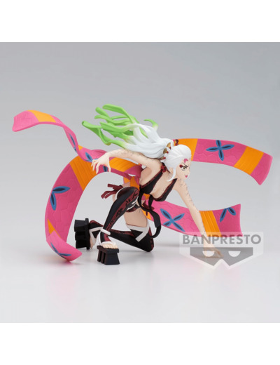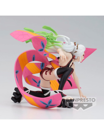 Figurine en PVC de Daki dans la gamme Vibration Stars Ver.B. En tant que démon de Rang Supérieur, Daki est très puissante, ayant été personnellement reconnue par Muzan comme étant un « démon spécial ». Il est noté que Daki est capable de tuer et de manger sept Piliers dans le passé, ce qui témoigne de sa force. Le Pouvoir Sanguinaire de Daki lui permet de manipuler les ceintures Obi à motifs floraux qu'elle porte et qui sont créées à partir de sa chair et de son sang. Ses ceintures sont réputées pour être douces comme la soie, mais aussi tranchantes, sinon plus, que la plupart des épées du Soleil. La demoiselle adopte une posture dynamique avec ses ceintures Obi déployées comme des tentacules prêts à trancher son adversaire. Elle affiche un regard déterminé, bien décidée à gagner son combat. Une pièce de collection qui saura plaire aux fans de Kimetsu No Yaiba connu en France sous le nom de Demon Slayer.