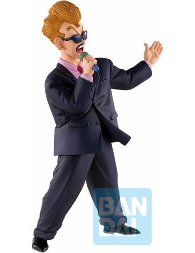 figurine de 22 cm, lui donnant une allure dynamique, communicative et débordante d'énergie. Il se casse la voix dans son costume parfaitement réalisée par une sculpture de qualité. Bien que son regard soit dissimulé par ses lunettes de soleil, on remarque toute sa passion et son énergie à travers l'expression de sa bouche et de ses sourcils. Rares sont les figurines de ce personnage, c'est l'occasion parfaite pour l'ajouter à votre collection Dragon Ball.