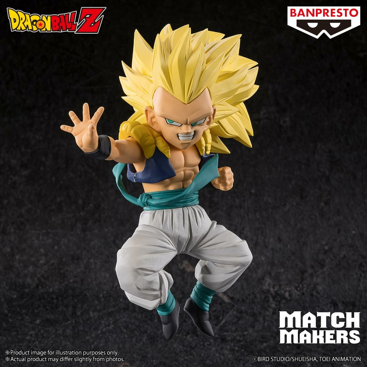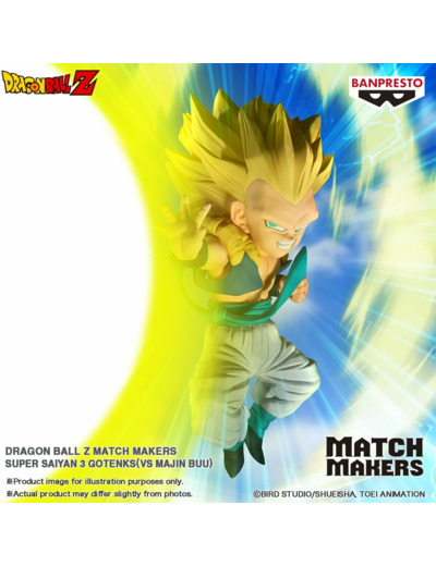Plongez dans l'univers explosif de Dragon Ball Z avec cette incroyable figurine de Gotenks, le personnage né de la fusion entre Trunks et Goten. Tirée de la collection Match Makers, cette figurine de 11 cm capture Gotenks dans toute sa puissance lors de son combat en Super Saiyan 3, prêt à exécuter l'une de ses techniques redoutables. Parfaitement sculptée et pleine de dynamisme, cette figurine est un véritable incontournable pour les fans de la série !