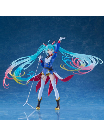 La figurine mesure environ 21 cm de hauteur, capturant parfaitement la pose emblématique de Hatsune Miku. Grâce à la nouvelle ligne Banpresto Evolve, cette figurine se distingue par ses détails impressionnants et ses finitions soignées qui raviront les collectionneurs.
