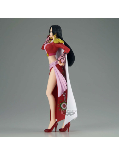 Ajoutez une touche de charme et d'élégance à votre collection avec cette figurine de Boa Hancock, l'Impératrice Pirate emblématique de One Piece. Faisant partie de la collection Glitter & Glamours de Banpresto, cette pièce de 22 cm capture parfaitement la grâce et la personnalité de ce personnage légendaire. Présentée dans une boîte cartonnée illustrée, cette figurine est un incontournable pour tout fan de One Piece.