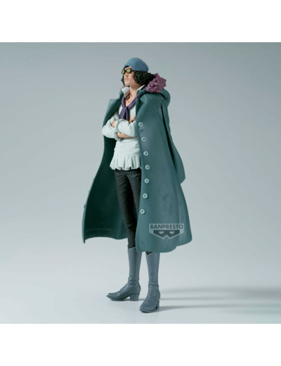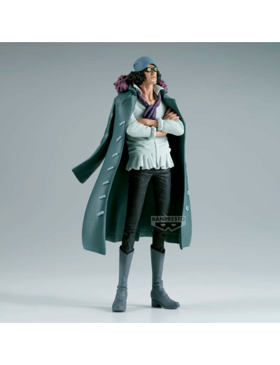 Kuzan, détenteur du Hie Hie no Mi, est capable de transformer son corps en glace. Grâce à son pouvoir redoutable, il peut geler des océans entiers avec sa technique "Ice Age" et manipuler le froid pour se protéger ou se déplacer sur l’eau. Représenté dans une posture sérieuse et calme, cette figurine Aokiji saisit son esprit glaciale et montre l’intensité de son caractère.