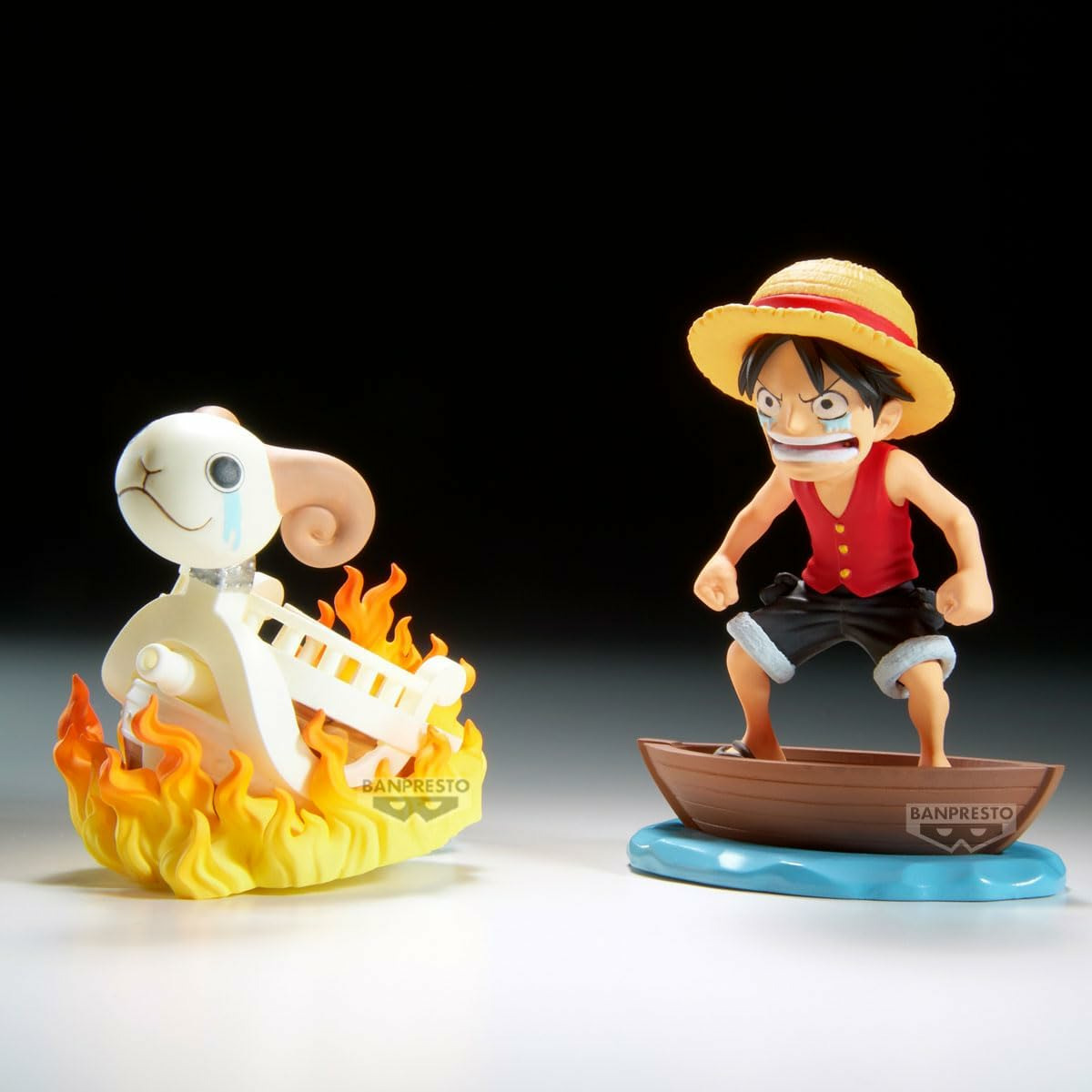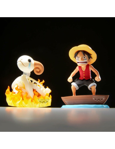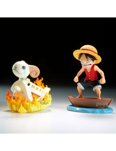 Découvrez la figurine ONE PIECE - WCF LOG STORIES - LUFFY & GOING MERRY, éditée par Banpresto. Cette pièce de collection met en scène Luffy, le célèbre capitaine au chapeau de paille, debout sur un petit bateau, prêt à l'aventure. À ses côtés, le Going Merry, le premier navire de l'équipage, est représenté avec des détails saisissants, entouré de flammes, symbolisant un moment clé de l'histoire. Fabriquée avec soin, cette figurine capture l'essence et l'émotion de One Piece, offrant une touche de nostalgie et de passion à toute collection.