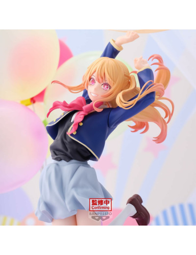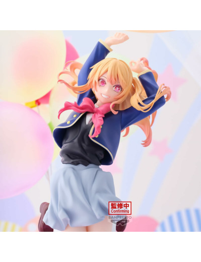 Avec un sourire radieux et une énergie débordante, Hoshino Ruby semble s'élancer avec grâce et vivacité, reflétant son caractère optimiste et déterminé dans Oshi no ko. Cette figurine la présente dans une posture aérienne dynamique, les bras levés et les jambes pliées, comme si elle sautait avec enthousiasme. Son uniforme scolaire bleu et rose est fidèlement reproduit, avec une jupe légère qui accompagne son mouvement et des bas blancs contrastant avec ses chaussures marron.