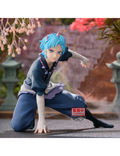ouki, le personnage mystérieux incarné par Aquamarine Hoshino dans la pièce Tokyo Blade de la seconde saison de l’anime Oshi no ko, est magnifiquement représenté dans cette figurine créée par Banpresto. Acteur issu du show-business, Aquamarine revêt ici une perruque bleu vif qui tranche avec ses cheveux blonds habituels, mettant en lumière sa transformation totale pour ce rôle marquant. Son apparence se distingue également par de petites cornes roses qui ajoutent une touche mystique, renforçant l’aura intrigante de Touki.