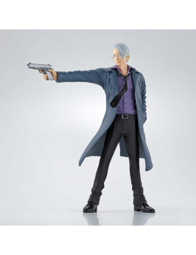 Découvrez la figurine de Taro Sakamoto, héros du manga “Sakamoto Days”. Mesurant environ 22 cm, cette pièce de collection fabriquée par Banpresto capture Taro dans une pose dynamique. Vêtu d’un costume gris avec une cravate violette et un manteau long flottant, il tient un pistolet pointé devant lui. La qualité de la peinture et les détails minutieux rendent cette figurine incontournable.