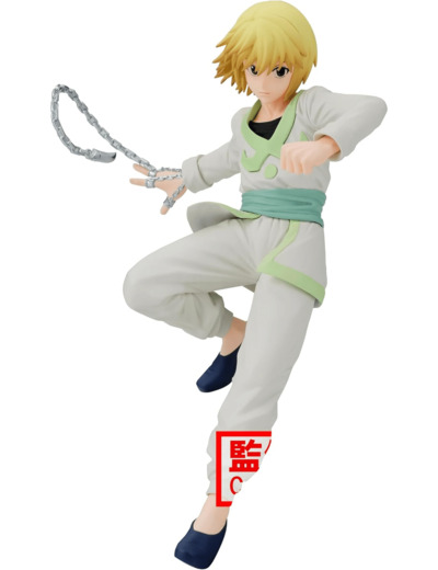 Figurine en PVC de Kurapika dans la gamme Vibrations Stars. Kurapika fait sa première apparition à bord d'un navire qui va de l'île de la baleine à un site où se déroule une des épreuves de l'examen Hunter. Son intelligence exceptionnelle est compensée par ses prouesses de haute lutte et une volonté de fer qui provient de son désir de vengeance. Il est aussi très polyvalent comme il a été vu maniant différentes armes. Kurapika adopte une posture dynamique et affiche un regard déterminé montrant sa rage de vaincre. Une pièce de collection qui saura plaire aux fans de Hunter X Hunter.