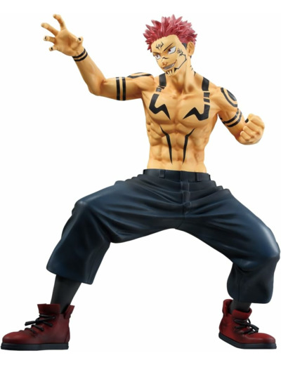 Retrouvez la figurine exceptionnelle de Sukuna de la série JUJUTSU KAISEN, éditée par Banpresto. Cette figurine de la collection MAXIMATIC capture parfaitement l'essence du personnage avec des détails minutieux et une posture dynamique. Sukuna est représenté torse nu, exhibant ses tatouages distinctifs et ses muscles saillants, prêt à combattre. Vêtu de pantalons amples et de bottes rouges, chaque élément de cette figurine est soigneusement sculpté pour offrir une représentation fidèle et impressionnante. Idéale pour les fans de la série, cette pièce de collection est un ajout incontournable à toute vitrine.