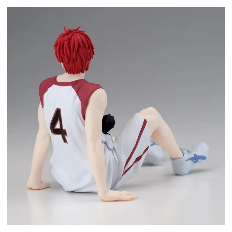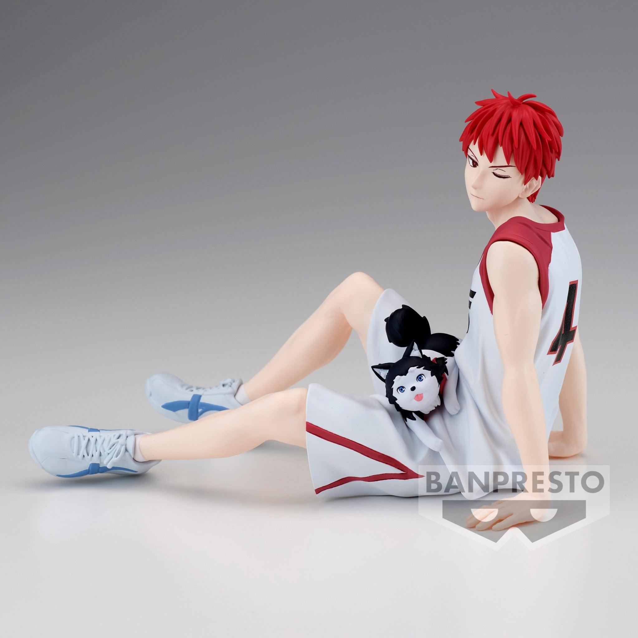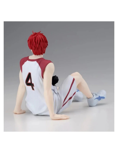 Cette figurine représente l'aura à la fois élégante et déterminée de Seijuro Akashi, l'ancienne star du basket et cerveau de la Génération des Miracles. Vêtu de son luxueux maillot rouge et blanc de Rakuzan, il affiche un clin d'oeil et un léger sourire en coin, laissant deviner son intelligence et sa soif de victoire. Il est en position assise sur le sol avec son fidèle compagnon.