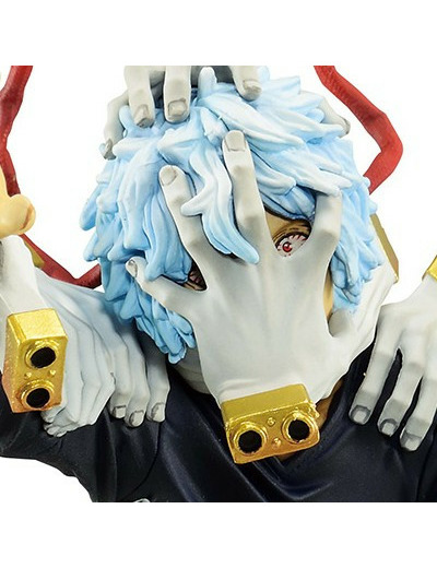 Figurine en PVC de Tomura Shigaraki dans la gamme Banpresto Chronicle Academy Vol.4. Une sculpture très dynamique et pleine de détails donnant du réalisme. On peut apercevoir son œil rouge gorgé de haine et de colère à travers la main qui recouvre son visage. Ce vilain est prêt à tout pour mettre en place sa vengeance. Une pièce de collection qui saura plaire aux fans de My Hero Academia.