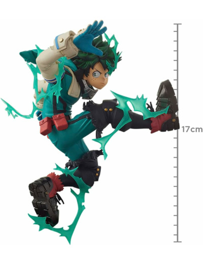 Figurine en PVC de Izuku Midoriya. Une sculpture avec une posture dynamique mais efficace, on le retrouve avec son costume de héros avec de magnifique effets.