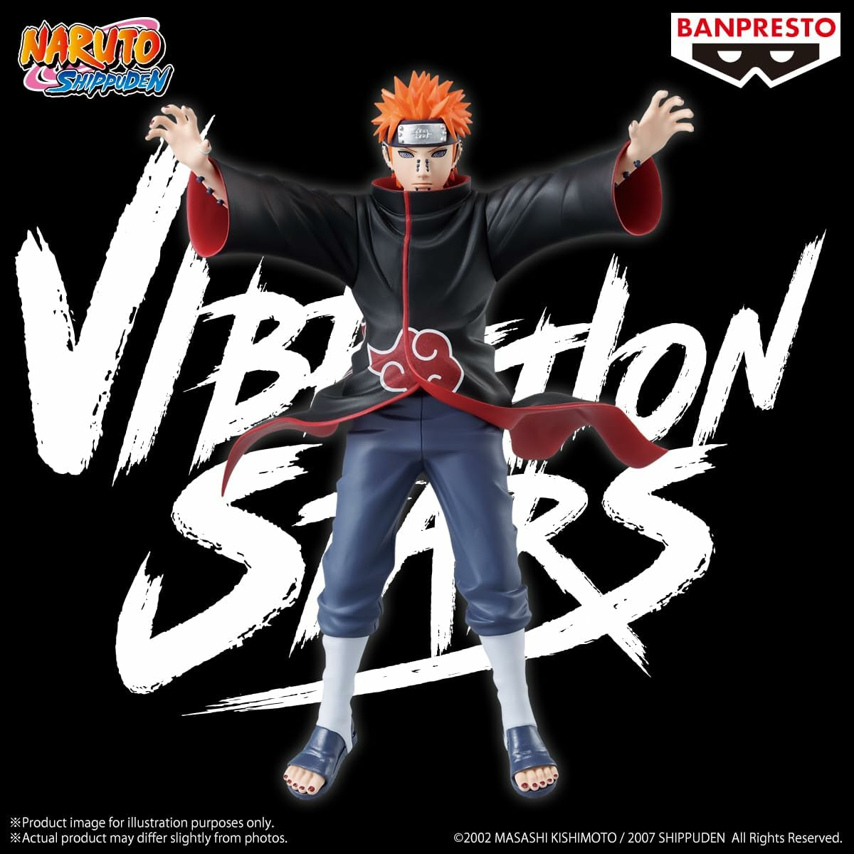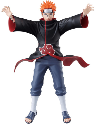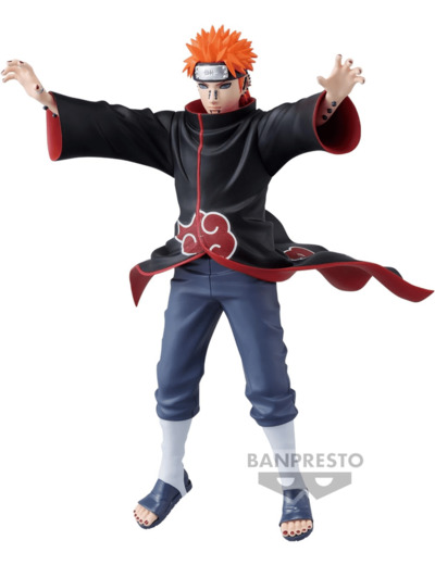 Figurine de Pain, du célèbre Univers et Manga Naruto Shippuden, dans la Gamme Vibration Stars. Retrouvez Pain dans une posture simple, mais diablement efficace et charismatique, les bras tendus en avant comme pour préparer sa célèbre et puissante attaque. Nous pouvons ressentir une légère touche de mouvement grâce à ses vêtements qui voltigent au rythme du vent.