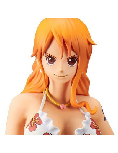 Figurine en PVC de Nami dans la gamme Grandista Nero. La navigatrice des Mugiwara s'offre une nouvelle sculpture simple mais efficace dans sa tenue deux pièces qui permet de mettre ses courbes en valeur. Elle adopte une posture décontractée, prête à rejoindre votre collection One Piece.