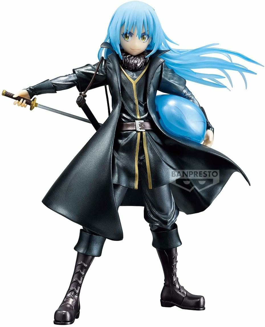Découvrez la figurine exceptionnelle de Rimuru Tempest de la série "That Time I Got Reincarnated as a Slime", éditée par Banpresto. Cette figurine ESPRESTO capture parfaitement l'essence du personnage avec des détails minutieux et une finition de haute qualité. Rimuru est représenté dans une pose dynamique, vêtu de son manteau noir emblématique et tenant une épée dans une main et un casque bleu dans l'autre. Les couleurs vives et les textures réalistes ajoutent une touche de vie à cette pièce de collection. Idéale pour les fans de la série, cette figurine est un ajout incontournable à toute collection d'anime. Hauteur approximative : 21 cm.
