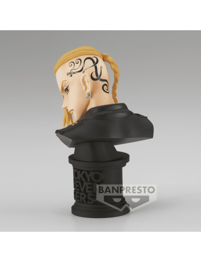 Figurine en PVC de Ken Ryuguji dans la gamme Faceculptures Ver.A. Le jeune Draken pourrait se faire une place dans un musée avec cette sculpture mettant en évidence les angles de son visage ainsi que son tatouage. Posé sur un pilier où le nom de sa licence est inscrit, Draken affiche un regard perçant. Le travail de cette figurine donne vraiment l'impression qu'il a été sculpté dans le marbre. Une pièce de collection qui saura plaire aux fans de Tokyo Revengers.