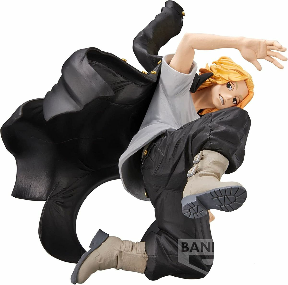 Figurine en PVC de Manjro Sano dans la gamme King Of Artist. Connu sous le nom de Mikey, ce jeune homme est à la tête d'un célèbre gang aux poings faciles. D'ailleurs, il adopte une posture dynamique et aérienne, donnant l'impression de s'élancer pour infliger un coup de pied assassin à son adversaire. Une pièce de collection qui saura plaire aux fans de Tokyo Revengers.