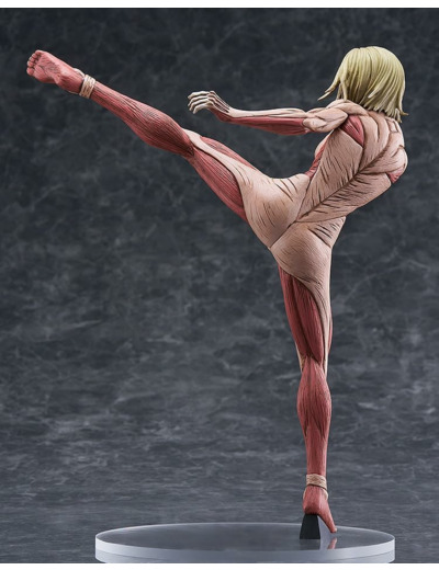 Cette figurine de SNK représente Annie Leonhart transformée en Titan Féminin exécutant l'un de ses coups de pied. Cette figurine en PVC est dotée d'un socle transparent discret pour un équilibre parfait.