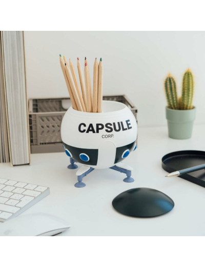 Il possède un couvercle amovible sur le dessus et inclut deux compartiments à l'intérieur pour une meilleure organisation des articles d'écriture.