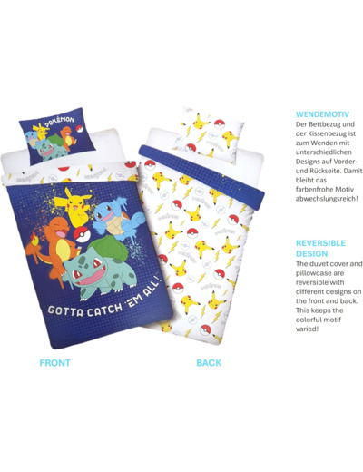 Avec cette housse de couette Pokémon, les nuits de votre enfant se transformeront en aventures passionnantes avec ses personnages préférés. Ne laissez pas passer l'occasion d'ajouter une touche de magie et de fun à son espace de repos. Commandez dès maintenant et faites des rêves de Pokémon une réalité!