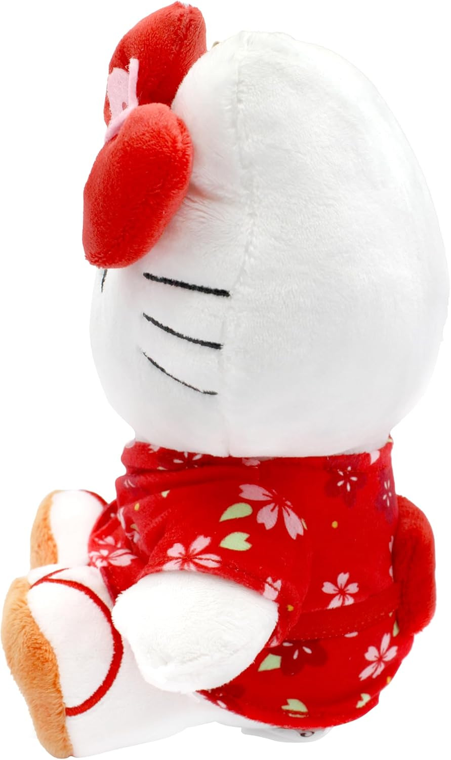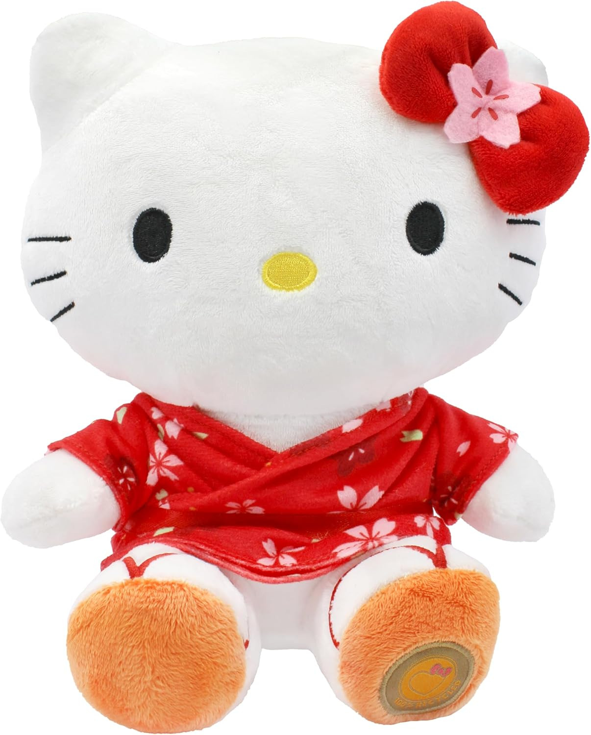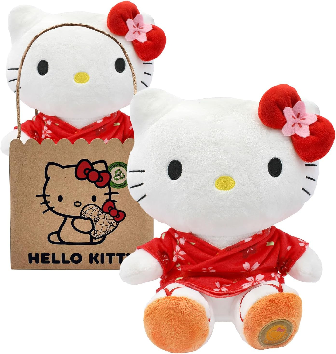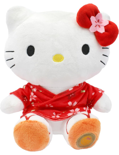 Offrez à votre enfant le compagnon idéal avec notre peluche Hello Kitty en kimono ! Fabriquée en matière 100 % recyclée à partir de bouteilles PET, elle allie douceur et respect de l'environnement.