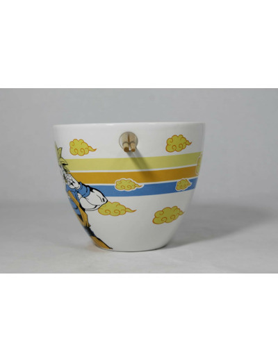 Vous pouvez voir sur le bol Son Goku, le personnage principal de la série, en Super Saiyan avec des nuages en fond.