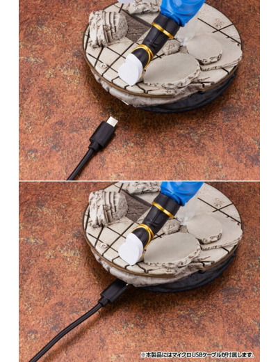 La statue a une fonction d'éclairage LED intégrée dans le poing droit (câble USB inclus).