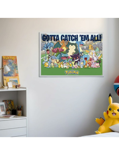 L'attaque tonnerre de Pikachu, lance-flamme de Salamèche, giga impact de Mewtwo... revivez les moments épiques des combats Pokémon avec ce poster